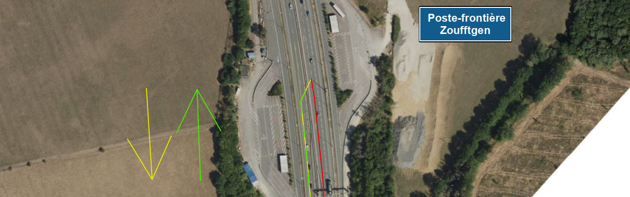 A3: trafic en mode bidirectionnel, sur une voie par direction, entre le poste-frontière Zoufftgen et la frontière franco-luxembourgeoise