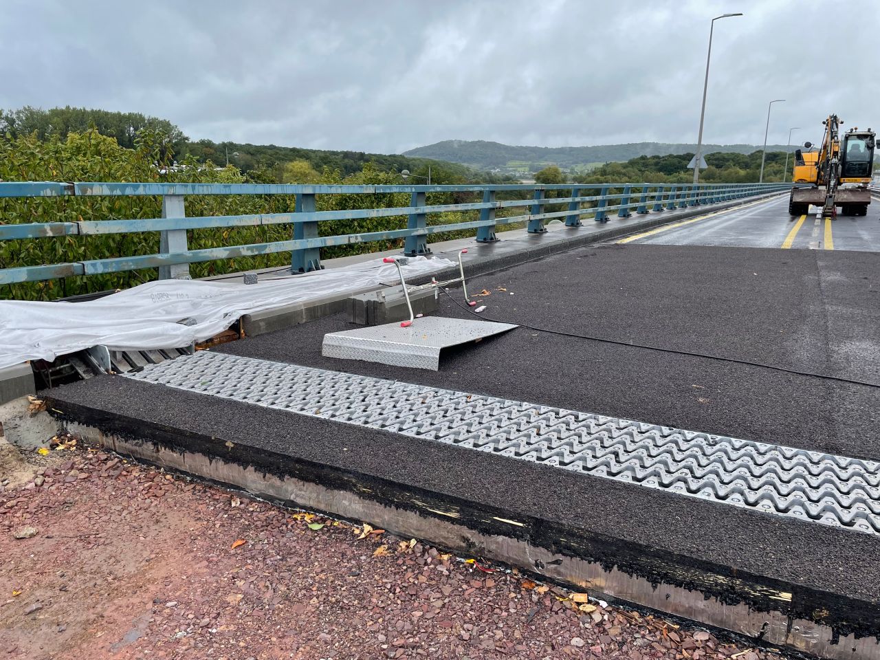 - Du 12 juillet au 9 septembre 2024 : enlèvement des joints existants, préparation des supports pour la fixation des tôles provisoires et mise en place des enrobés de la zone de travail.