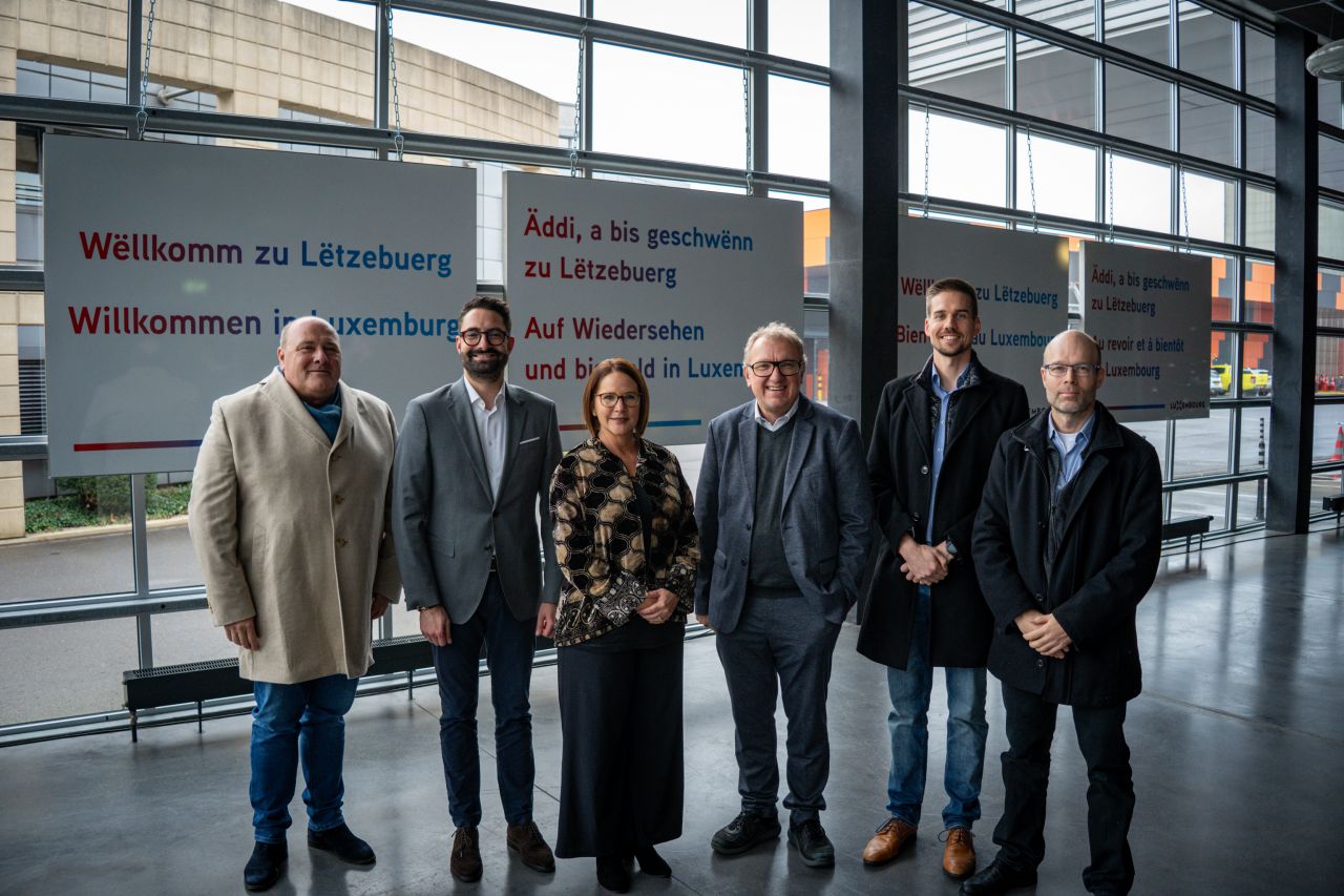 Am Kader vun den Efforte fir d’Visibilitéit vun der Lëtzebuerger Sprooch am ëffentleche Raum ze stäerken, waren de Kulturminister Eric Thill an d’Ministesch fir Mobilitéit an ëffentlech Aarbechte Yuriko Backes den 11. Dezember 2025 am Atelier vun Ponts et Chaussées déi nei zweesproocheg Begréissungsschëlder besichtegen, déi op Initiativ vum Kulturministère vun eisen Leit no bei de Grenzen op den Autobunnen opgestallt ginn.