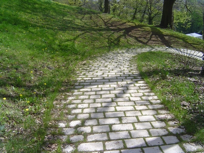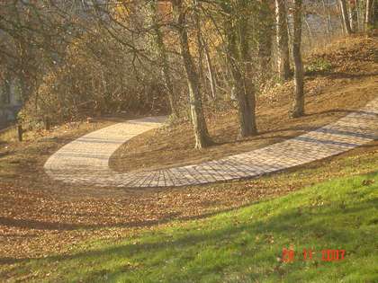 Quant aux matériaux utilisés au sol, le parc présentera une gradation de l'urbain vers le naturel. Ainsi, le passage évoluera de grandes surfaces minérales vers des chemins en pavés avec introduction progressive de joints engazonnés , créant par là différents niveaux de densité.