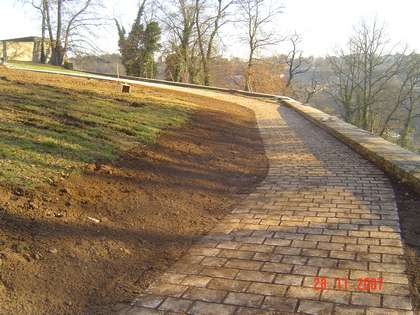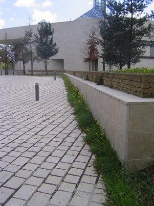 - le parvis lui-même d'une surface de quelque 4000 m² réalisé en pavés et en pente régulière vers les douves
