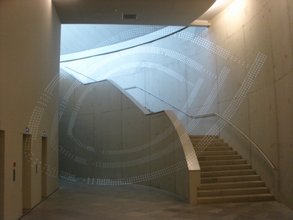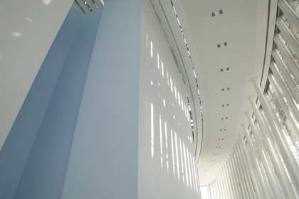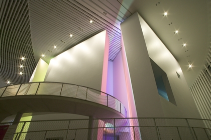 Les parties saillantes de la falaise cachent à chaque fois trois canaux lumineux aux couleurs primaires. Ainsi, l'ensemble des couleurs du spectre lumineux peut être créé en modulant l'intensité des différentes teintes. Cet effet renforce l'impression d'un bâtiment à l'intérieur du bâtiment.