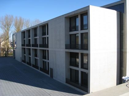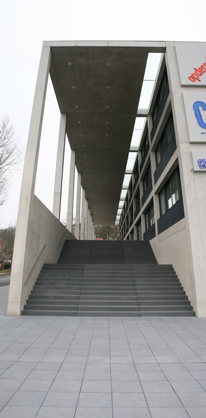 La conception de l’ensemble du complexe se veut d’être d’une sobriété exemplaire, le béton est le matériau prédominant, aussi bien à l’extérieur qu’à l’intérieur. Il est massif, monolithique et met en évidence la structure simple du bâtiment.