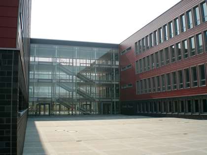 L'entrée principale de l'école ainsi que l'entrée séparée pour les ateliers se situent du coté de la rue Nicolas Hein.
