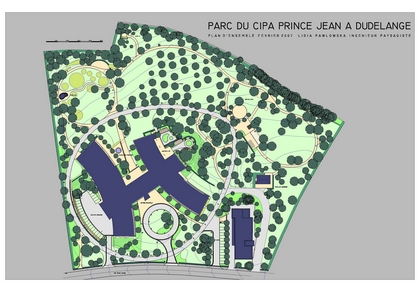 Le site du CIPA se trouve à l’extrémité nord-est de la Ville de Dudelange, à proximité immédiate de la forêt « Le’h ». Il s’agit d’un terrain d’une étendue remarquable (4,4 hectares) qui sera aménagé en parc public, convivial et arboré avec un grand verger, des chemins et aires de jeux. Ce sera un lieu de rencontre pour les personnes du centre et les habitants du quartier, accessible à tous à partir de la rue Pierre Dupong qui le délimite au sud.