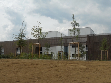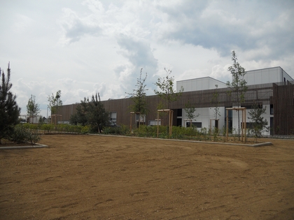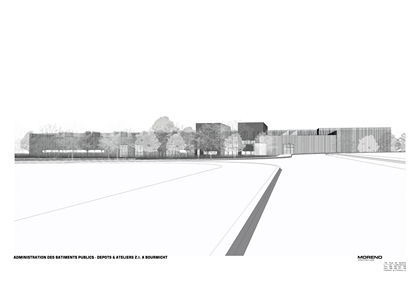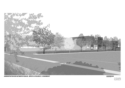Les bâtiments ont été implantés de façon à respecter la logique d’utilisation, les locaux à activités (administration, ateliers, jardinage) étant situés volontairement le long de la voirie principale dans un volume compact et unique, les stocks à activités réduites ou occasionnelles étant implantés en arrière plan.