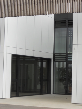 Les bâtiments ont été conçus dans un souci d’unité et de cohérence : les façades extérieures des deux volumes sont traitées de façon similaire.