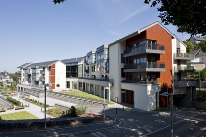 La zone verte ainsi dégagée est aménagée en jardins et terrasses en raison de son ensoleillement. Des promenades et allées la traversent depuis la Place des Martyrs jusqu’au centre–ville ce qui contribue à l’intégration urbaine du CIPA. Ce lieu de rencontre extérieur favorisera les contacts sociaux entre personnes âgées et riverains. L’endroit, par sa proximité avec les bois de la vallée de Kautenbach, par sa liaison avec les abords du château, est aussi un point de départ intéressant pour les randonneurs et un but de promenade pour les touristes.