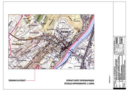Le terrain est situé dans la nouvelle zone d´activité ‘Jongebesch’ à l’entrée de Remich longeant la route d´Europe, la Route nationale N2 vers Luxembourg. Cette zone d´activité permettra de reloger en dehors des quartiers résidentiels certains services publics et privés.