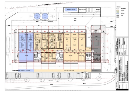 Les bâtiments administratif et sociaux sont réalisés en construction massive avec une structure principale en béton armé. Les cloisons de séparation intérieures sont exécutées en briques de ciment ou en plaques de plâtre.