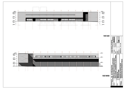 Du côté nord un hall en construction légère à caractère industriel vient s’accoler le long du bâtiment des dépôts / locaux sociaux. Il comporte un seul niveau à double hauteur.