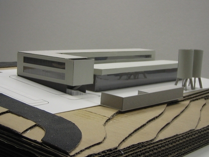 Ce bâtiment comportant trois étages est caractérisé par son étendue horizontale soulignée par l’aspect de la façade. Sa géométrie marque également le principe additif des différents locaux le long d’un couloir de desserte.