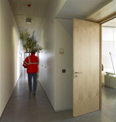 La partie administrative et les locaux sociaux sont conçus en construction massive sans faux-plafonds en vue de pouvoir activer la masse du béton comme régulateur de la chaleur accumulée. Ainsi le confort intérieur est optimisé tant en été qu’en hiver avec des consommations réduites en énergie.