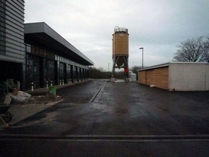 La zone à l´intérieur du site, vis-à-vis du hall du garage est strictement réservée aux besoins des Ponts et Chaussées comme surface de manœuvre pour les véhicules et engins. Cet espace est clôturé par deux portillons aux deux côtés opposés, délimitant ainsi un espace surveillé.
