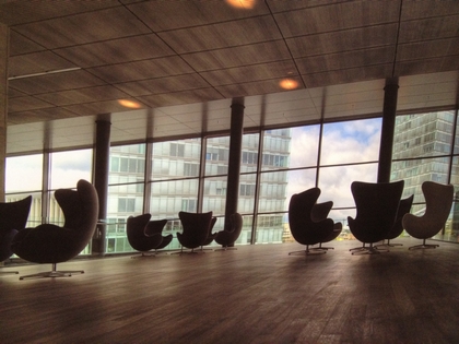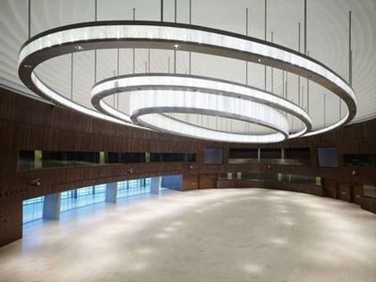 La grande salle de conférence ovale permettra à 100 personnes de siéger en première rangée. Elle sera équipée d’une installation de traduction simultanée en 28 langues.