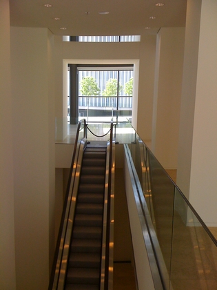 Le foyer, duquel s’ouvre du côté opposé à la place de l’Europe la vue sur la vieille ville et la vallée, empiète de tout son volume sur la rue du Fort Thüngen qui mène au Musée d’Art Moderne Grand Duc Jean et au Musée de la forteresse. La façade sur ce côté est constituée d’une double peau en verre dont les éléments extérieurs sont des lamelles orientables en verre sablé servant de par-soleil tout en garantissant une luminosité optimale à l’intérieur du foyer. Le socle en retrait longeant la chaussée et servant d’appui au foyer en porte-à-faux qui est réalisé en pierres naturelles crée un nouveau front de rue depuis le belvédère où il prend son origine jusqu’à l’hémicycle.