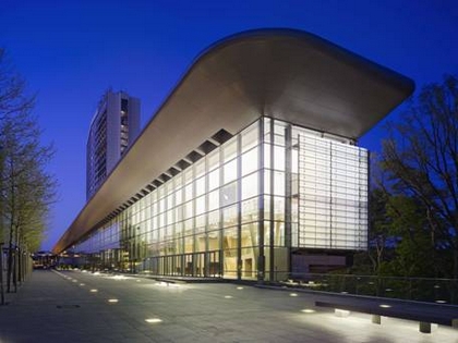 Le concept architectural du projet met en scène deux éléments majeurs à savoir un grand foyer transparent qui dessert les salles de conférence se développant sur une longueur de 300 mètres et le bâtiment Tour qui perce ce volume pour s’affirmer de ses 80 mètres de hauteur.