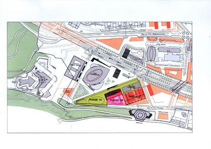 Dans le cadre du projet d’aménagement du plateau de Kirchberg Ricardo Bofill a été chargé par le Fonds d’Urbanisation et d’Aménagement du Plateau de Kirchberg d’étudier l’agencement particulier de la place de l’Europe. Le projet présenté par l’architecte a préconisé la création d’une place triangulaire dont la géométrie est conditionnée par les trois éléments majeurs du site à savoir le boulevard J.F.Kennedy, l’alignement du Bâtiment Schuman et l’alignement du bâtiment Tour (Héichhäus) et du Centre de conférence. Au centre de cette place Bofill a implanté la nouvelle salle de concert, composition complétée par un immeuble solitaire (hôtel) dans le prolongement du bâtiment Schuman et par deux tours de bureaux implantées de part et d’autre du boulevard.