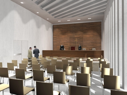Au rez-de-chaussée et au premier étage se trouvent les salles de séances, les salles d'audience ainsi que le service de consultations.