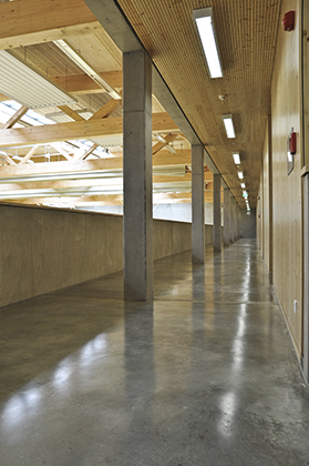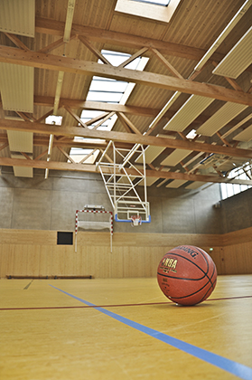 Des plafonds et habillages muraux absorbants dans les zones de circulation et la salle de sports permettent d’atteindre le confort acoustique nécessaire au bon déroulement des cours.