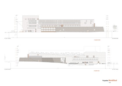 La composition des façades de la Bibliothèque repose sur un concept bien défini et différencié, de couleurs et de matériaux basé sur les contraintes du projet architectonique et les critères définis en vue de l’efficience énergétique, de la durabilité et d’une exploitation simple.