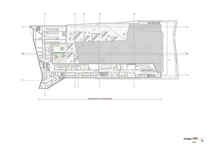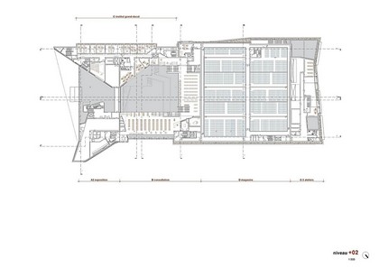 - dans la distribution des magasins sur plusieurs niveaux avec une affectation optimisée qui est en correspondance avec celle des espaces de consultation, des bureaux du service interne et des espaces de travail des magasiniers;