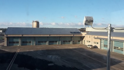 Tous les bâtiments, à l’exception du hall de stockage de sel et du dépôt couvert sont équipés de fenêtres/clapets de ventilation à ouverture motorisée permettant le refroidissement nocturne de la masse de béton.