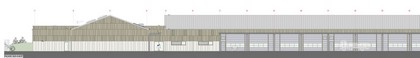 Les deux halls des ateliers et des garages par contre sont conçus comme construction légère, dont la structure portante est composée de poutres et poteaux métalliques sur laquelle repose la peau extérieure composée de cassettes murales isolées et recouvertes du même bardage en bois vertical que celui des autres bâtiments du site, ceci afin de garder une unité architecturale de l’ensemble.