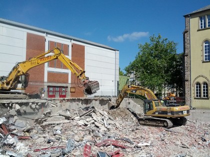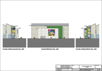 La construction nécessite l’enlèvement de l’escalier de secours existant. Après la réalisation du parking, un nouvel escalier est mis en place conforme aux règlements de la sécurité ; la sortie de secours au niveau de la salle des fêtes est à déplacer en fonction.