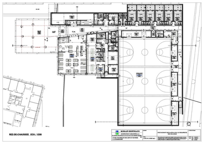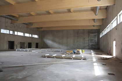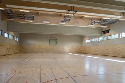 Le hall des sports est accessible par le hall d’entrée commun au rez-de-chaussée. En cas où le hall serait mis à disposition à des tiers, un accès indépendant au premier étage peut servir comme entrée secondaire.
