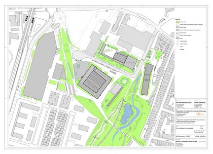 En termes d’urbanisme, le terrain de la future école peut être considéré comme une zone tampon entre la zone à urbaniser le long de la rue Emile Mark et le quartier Arboria en construction. La zone de l’école a le potentiel de faire évoluer le parc de la Chiers et de le relier au centre de Differdange. Le bâtiment est perçu comme une structure compacte et indépendante dans le parc. L’espace de verdure, prévu dans le plan directeur et traversé par les liaisons piétonnes entre les différents quartiers, gagne ainsi en importance.