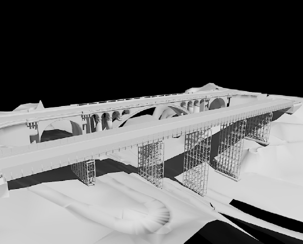 La réhabilitation du pont Adolphe à Luxembourg nécessite la démolition complète du tablier et des tympans ainsi que l’enlèvement d’une partie des voûtes d’élégissement. Il s’avère donc impossible de maintenir la circulation sur ce pont pendant la réalisation des travaux de confortement.